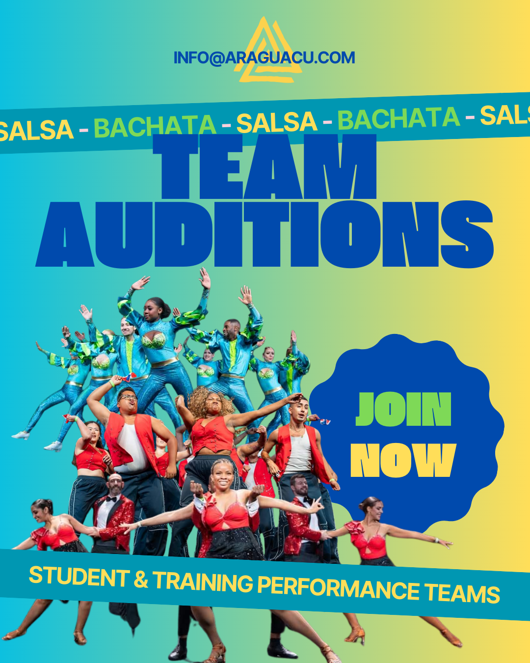 1. Must have a minimum of 6-12 months taking Salsa or Bachata classes - in class experience at Araguacu or another studio.